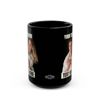 Custom Photo Mug & 2 Text Areas – Add your Image and your Text – Black Coffee Cup 11 or 15oz